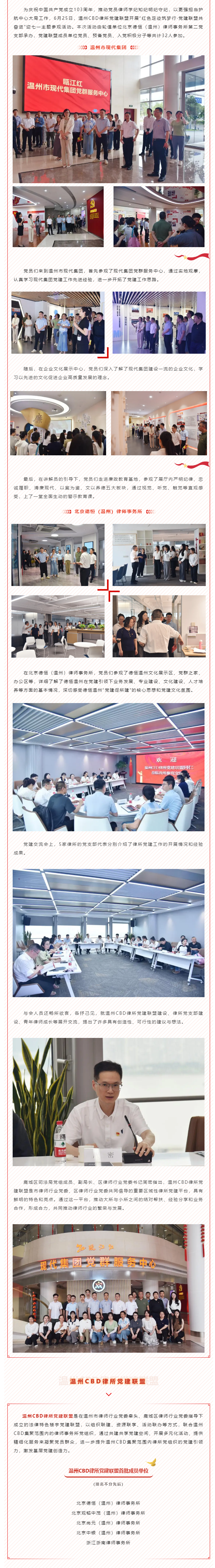 温州CBD律所党建联盟开展“红色足迹筑梦行·党建联盟共奋进”迎七一主题参观活动