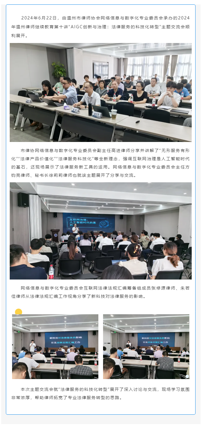 市律协举办2024继续教育第十讲“AIGC创新与治理:法律服务的科技化转型”主题交流会