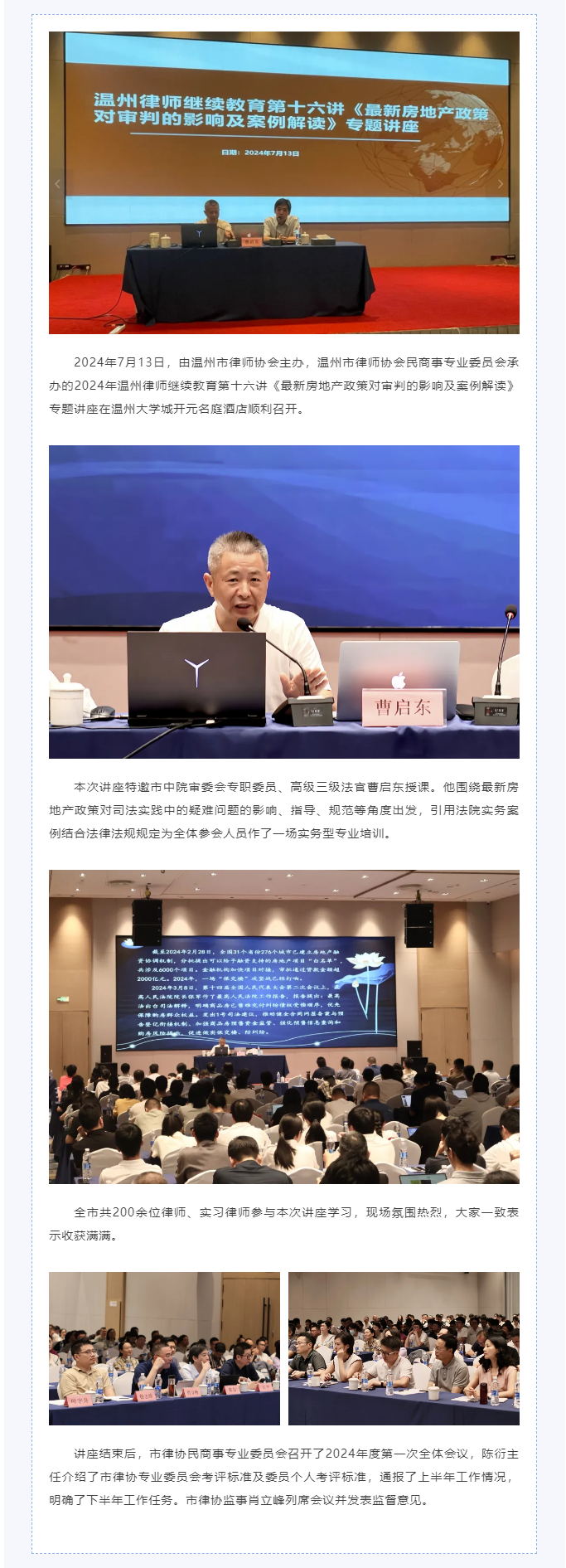 市律协举办2024继续教育第十六讲《最新房地产政策对审判的影响及案例解读》专题讲座暨民商事专业委员会工作会议