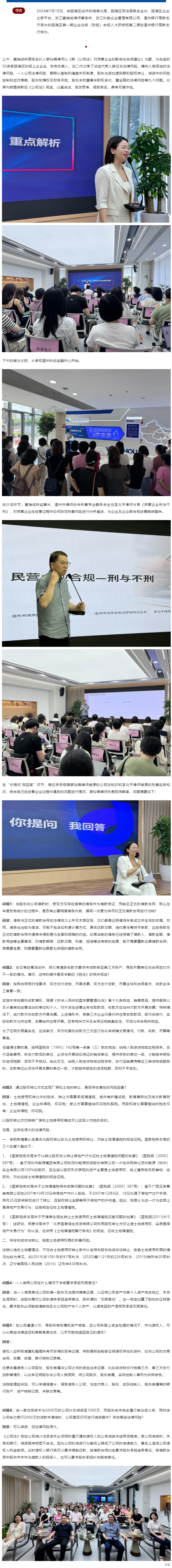 嘉瑞成律师为瓯海区企业法务(财税)合规人才研修班开讲《新〈公司法〉对民营企业的影响与合规建议》和《民营企业刑与不刑》