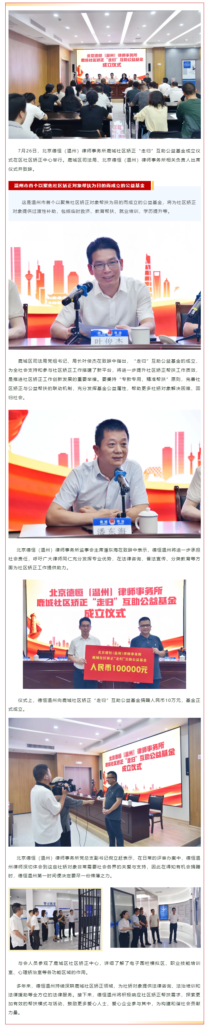 北京德恒(温州)律师事务所鹿城社区矫正“走归”互助公益基金正式成立