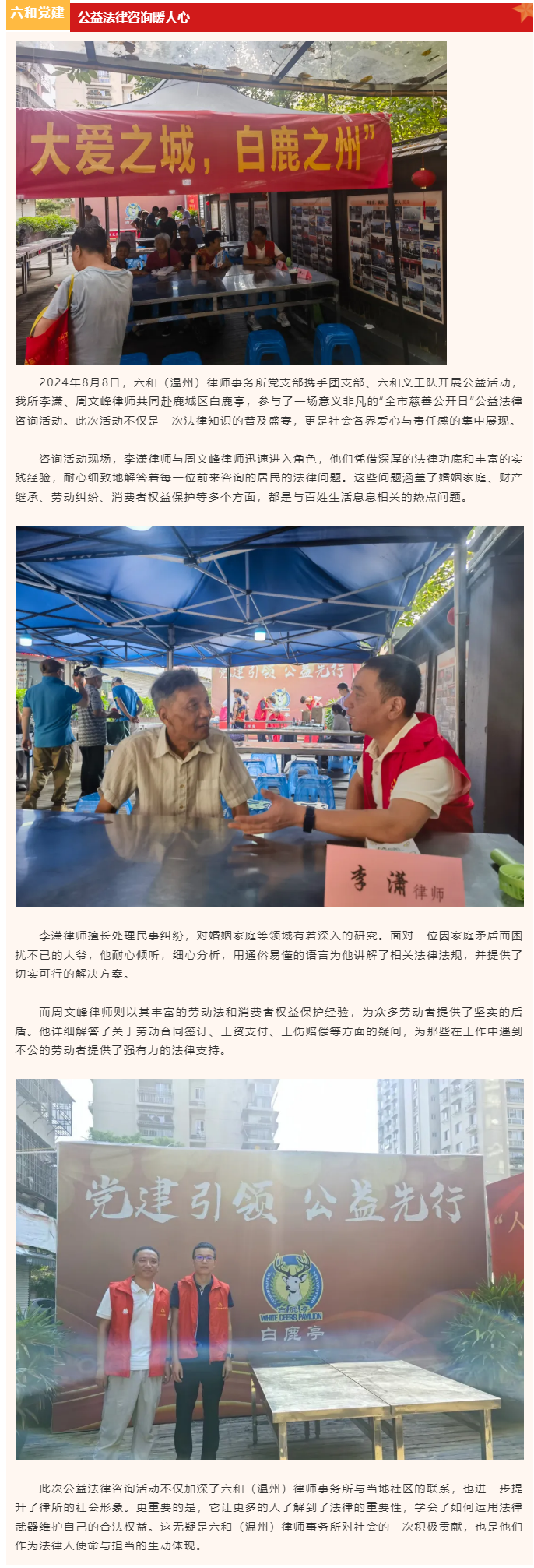 走进白鹿亭,六和温州所公益法律咨询暖人心