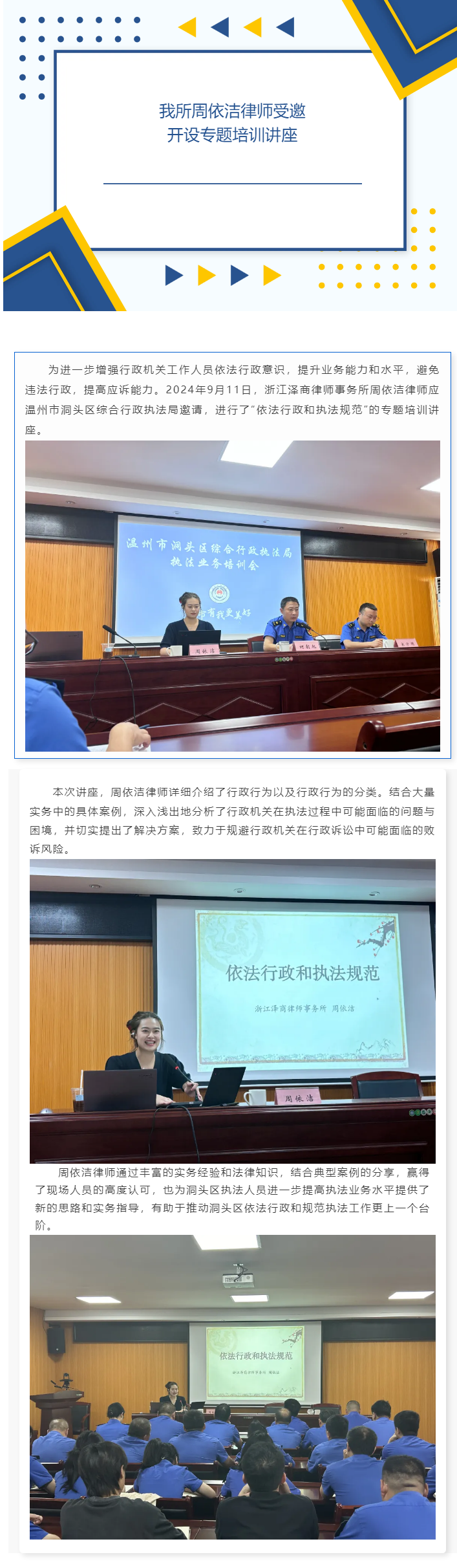 泽商所周依洁律师受邀为洞头区综合行政执法局开展行政执法专题培训讲座