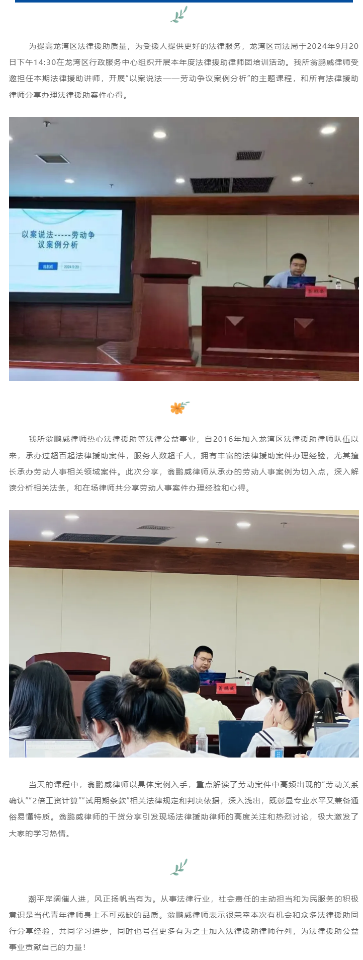 京师温州所翁鹏威律师受邀为龙湾区法律援助律师团开展培训