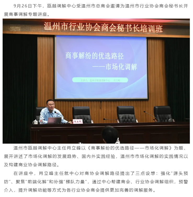 瓯越调解中心受邀为温州市行业协会商会秘书长提供市场化调解培训