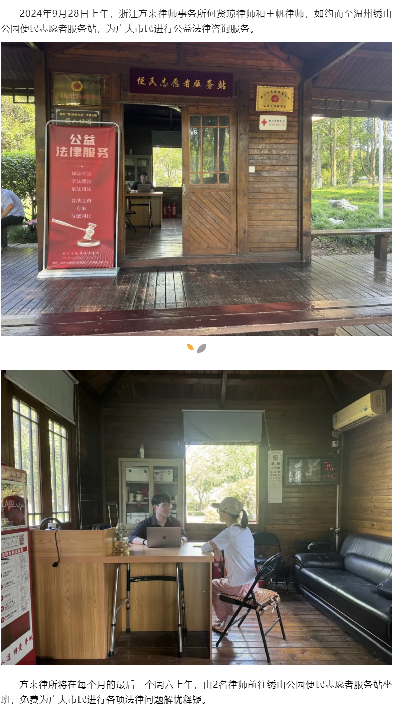 方来所律师走进温州绣山公园便民志愿者服务站开展公益法律咨询服务