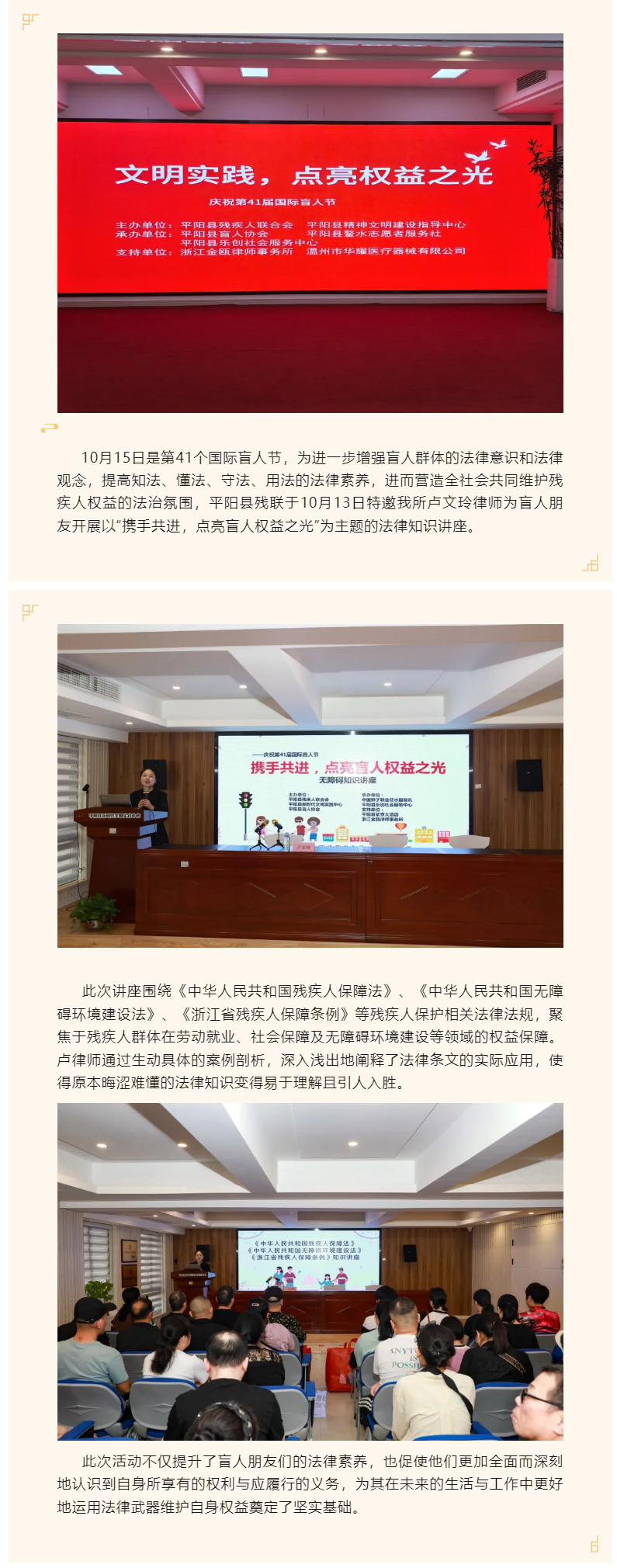 金瓯所卢文玲律师受邀为平阳县残联开展普法讲座