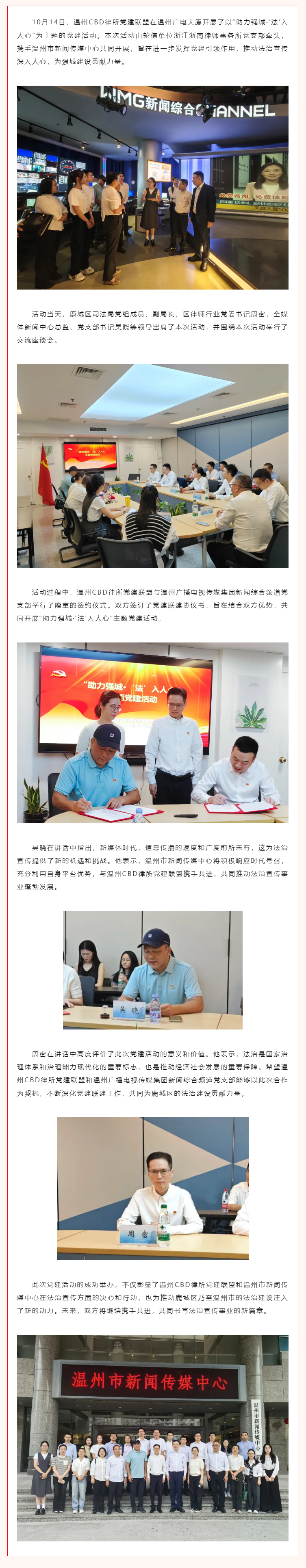 温州CBD律所党建联盟与温州市新闻传媒中心联合开展“助力强城·‘法’入人心”活动,共筑法治宣传新高地