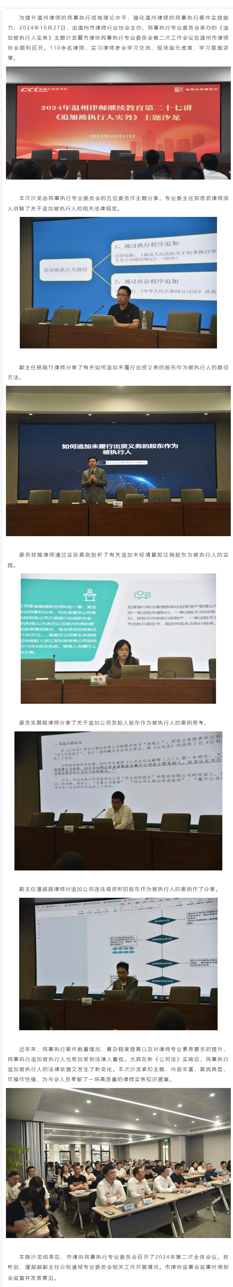 市律协成功举办2024年温州律师继续教育第二十七讲《追加被执行人实务》主题沙龙暨民事执行专业委员会第二次工作会议