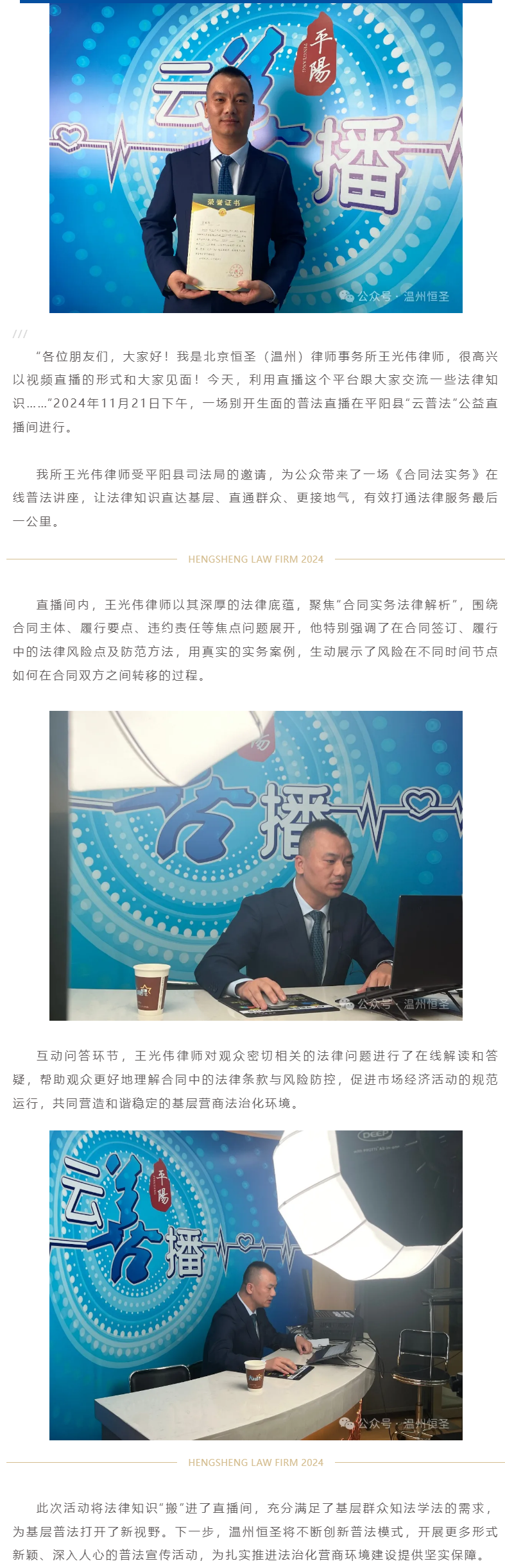 恒圣温州所王光伟律师受邀开展合同法实务普法直播