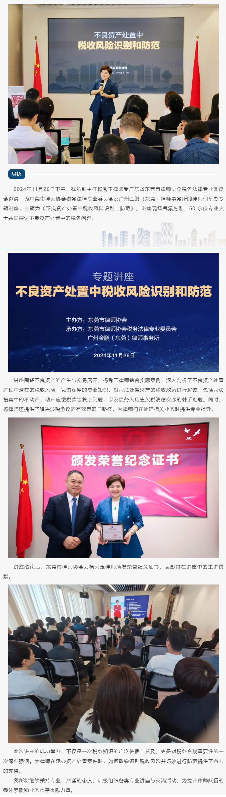 震瓯所杨秀玉律师受广东省东莞市律师协会邀请开展专题讲座