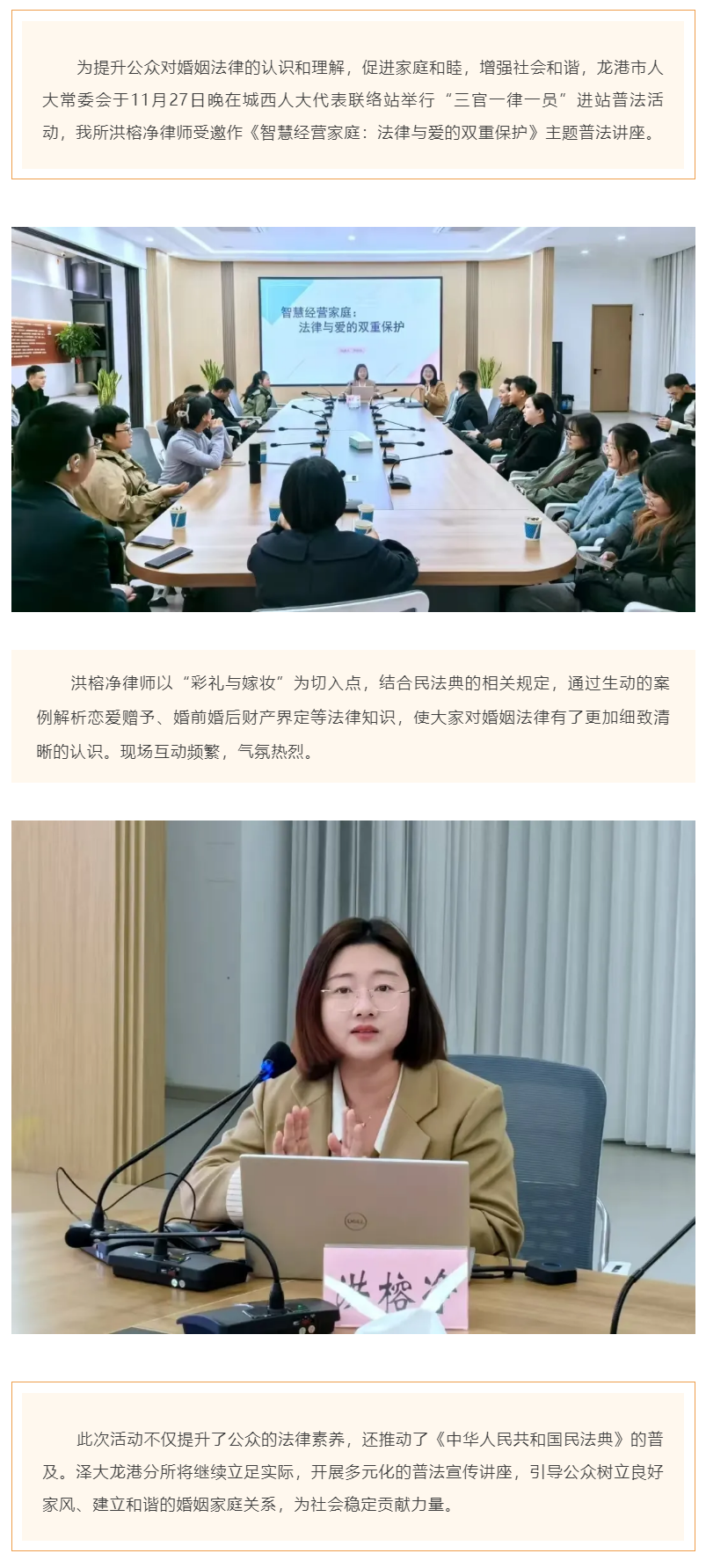 泽大龙港所洪榕净律师应邀在城西人大代表联络站开展普法宣讲