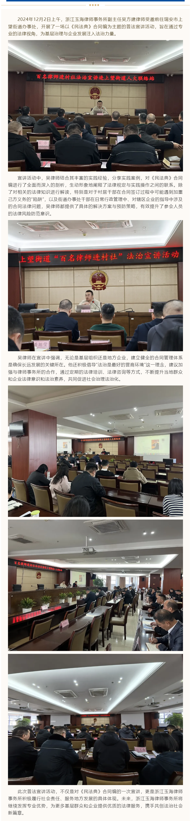 玉海所吴方建律师上望街道普法宣讲,助力基层法治建设