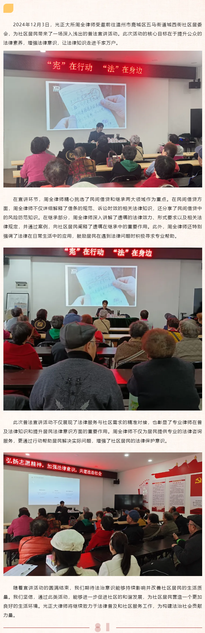 法润人心 共促和谐——光正大所周全律师为社区居民开展普法宣讲活动