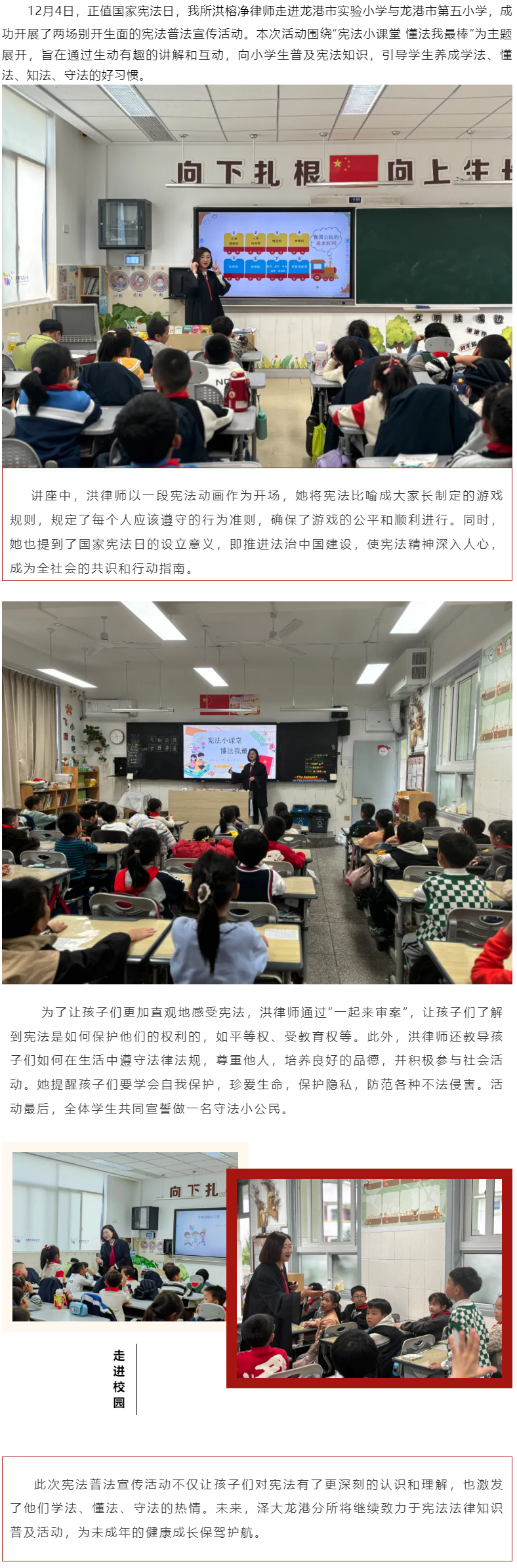 宪法精神润童心,法治教育筑未来——泽大龙港所律师进校园开展宪法普法宣传活动