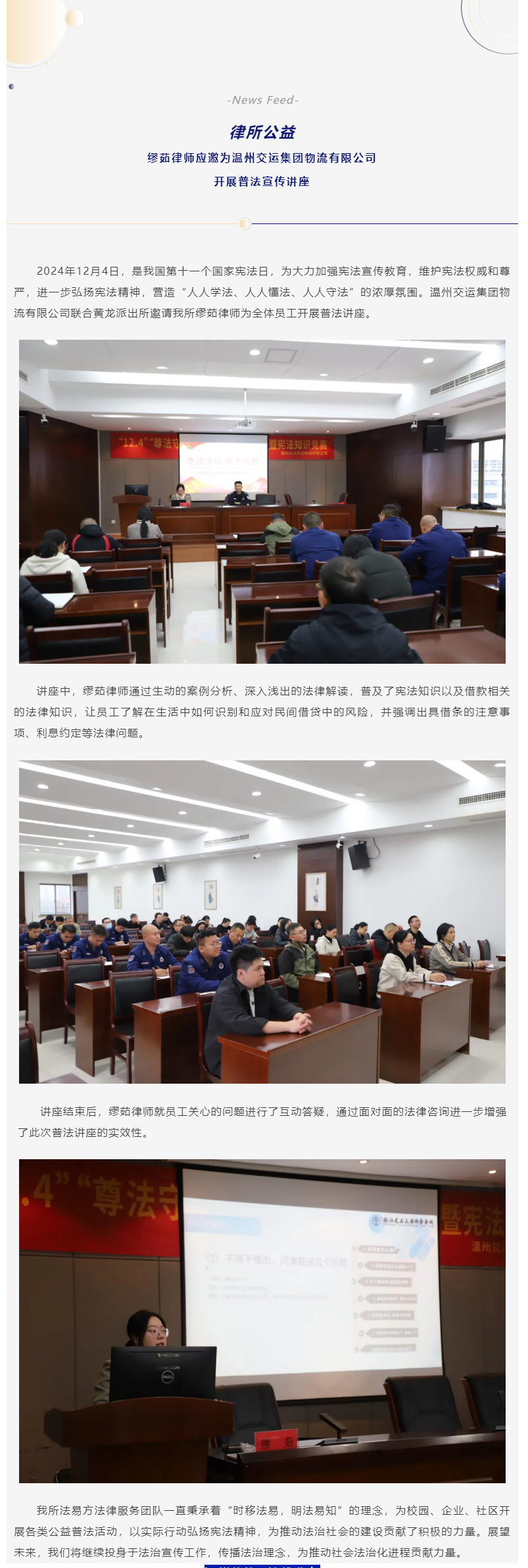 光正大所缪茹律师应邀为温州交运集团物流有限公司开展普法宣传讲座