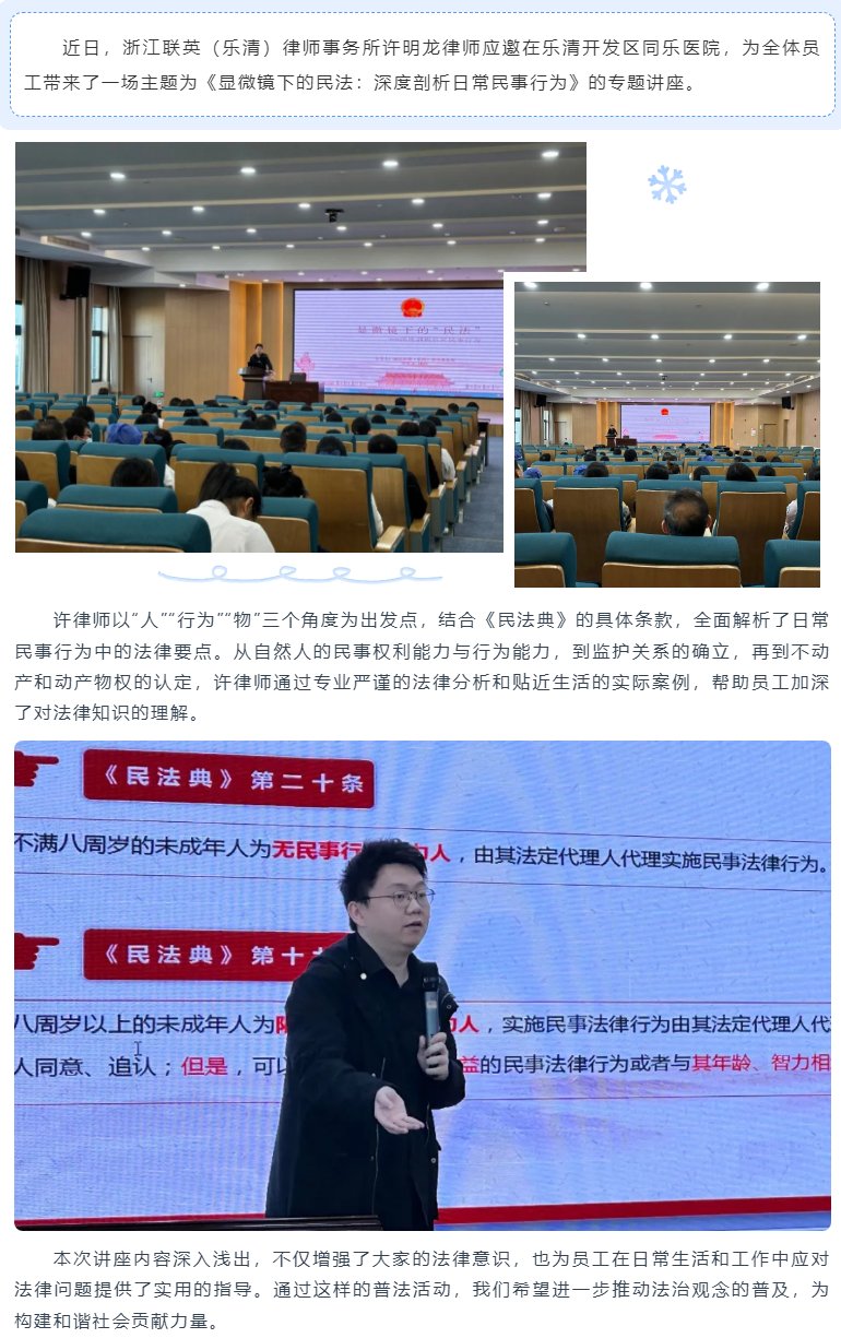 共筑法治桥梁:联英乐清所开展显微镜下的民法专题讲座