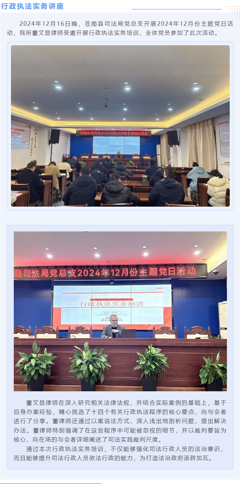 望舟所董文显律师受邀到苍南县司法局开展行政执法实务讲座