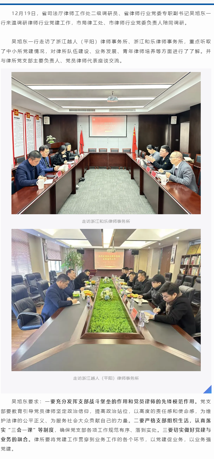 省律师行业党委专职副书记吴旭东一行来温调研党建工作