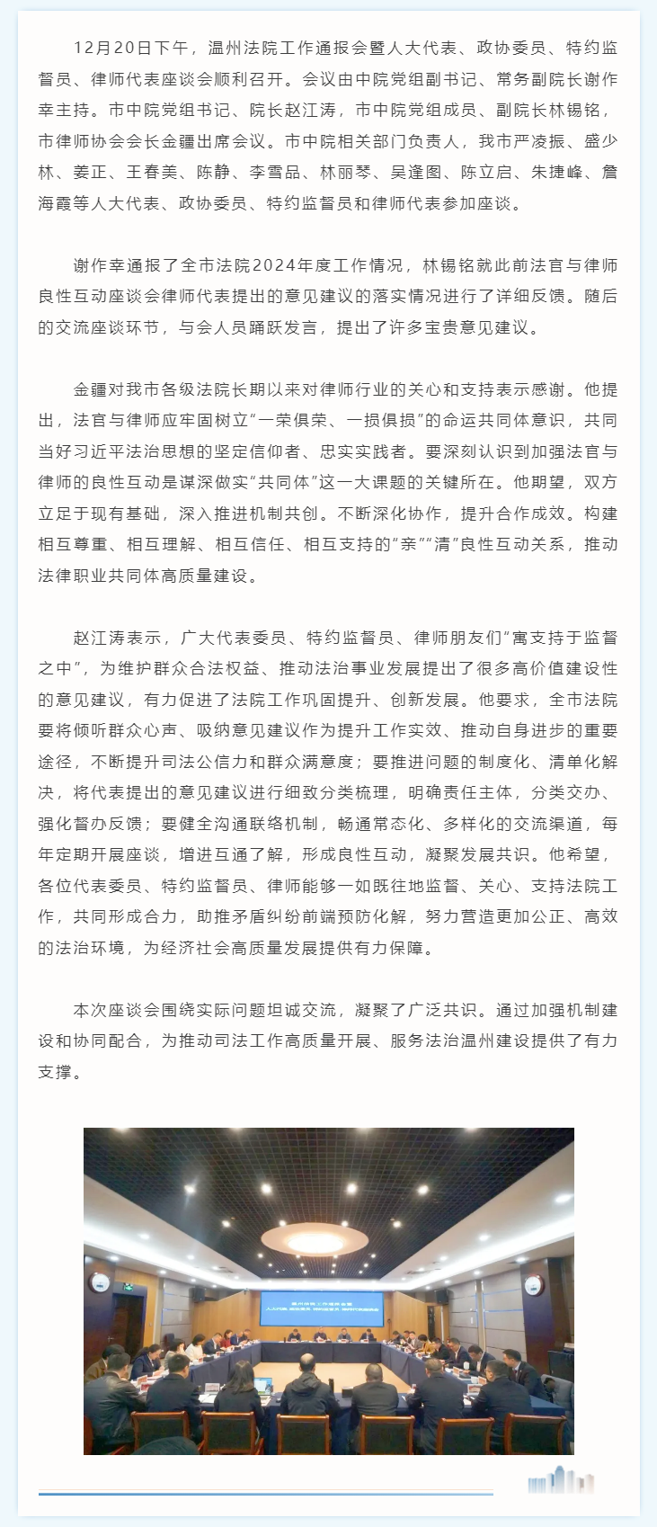 凝聚共识 携手共进丨我市律师参加温州法院工作通报会