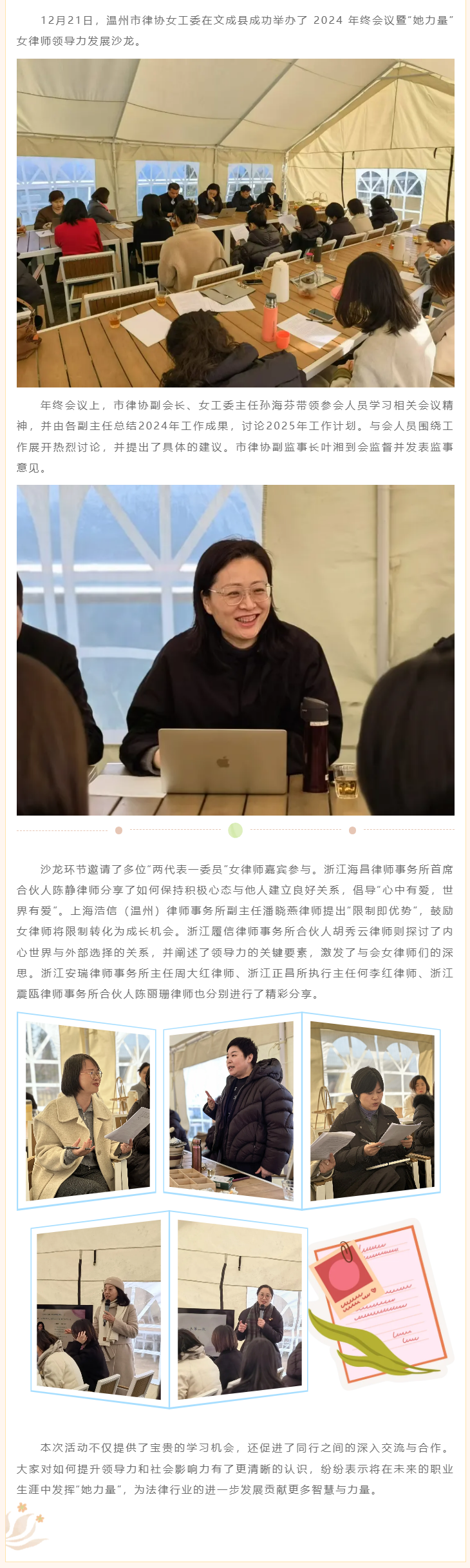 温州市律协女工委举办2024年终会议暨“她力量”女律师领导力发展沙龙