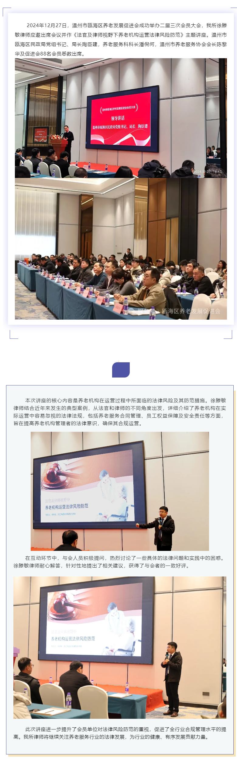 海昌所徐滕敏律师应温州市瓯海区养老发展促进会邀请作《养老机构运营法律风险防范》主题讲座