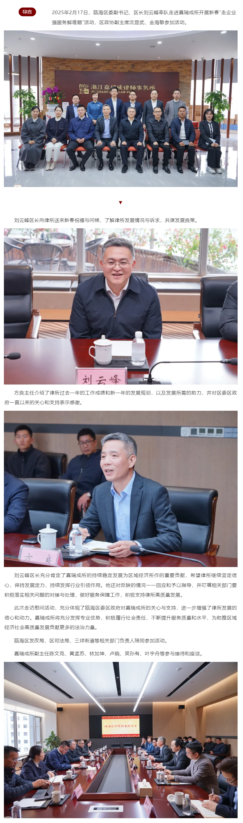 瓯海区长刘云峰一行到嘉瑞成所开展新春“走企业强服务解难题”活动