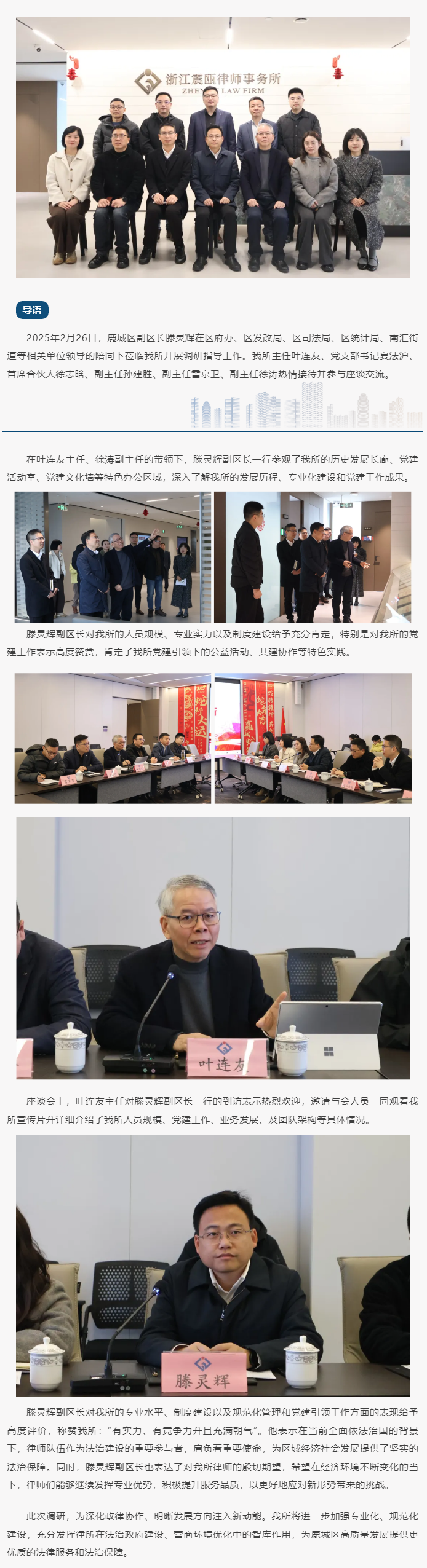 鹿城区副区长滕灵辉一行莅临震瓯所调研指导