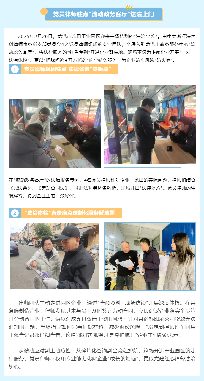 法之剑所党员律师驻点龙港市政务服务中心“流动政务客厅”送法上门