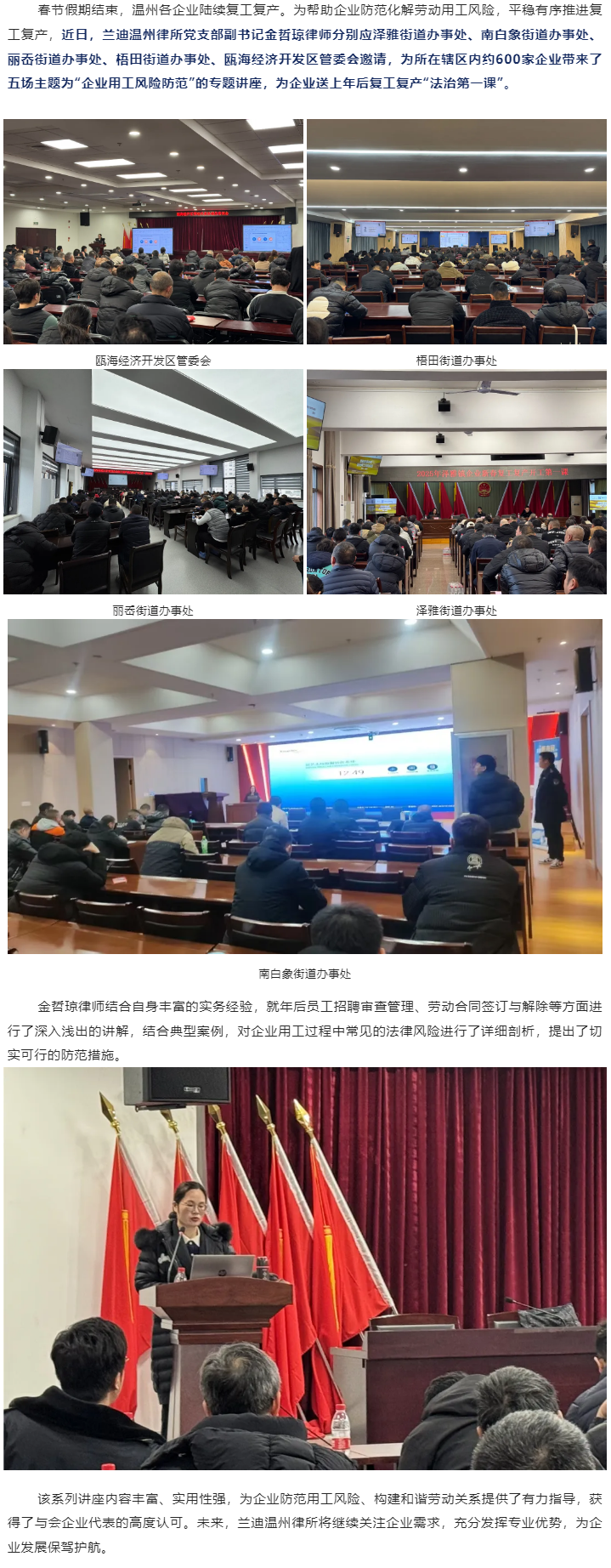 兰迪温州所金哲琼律师助力企业年后复工复产,开讲“企业用工风险防范”开工第一课