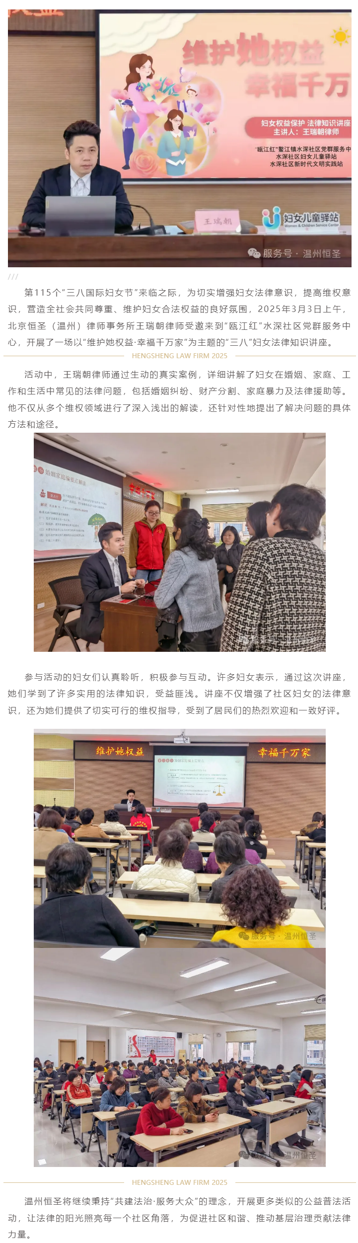 恒圣温州所王瑞朝律师开展“三八节”妇女权益保护法律知识讲座