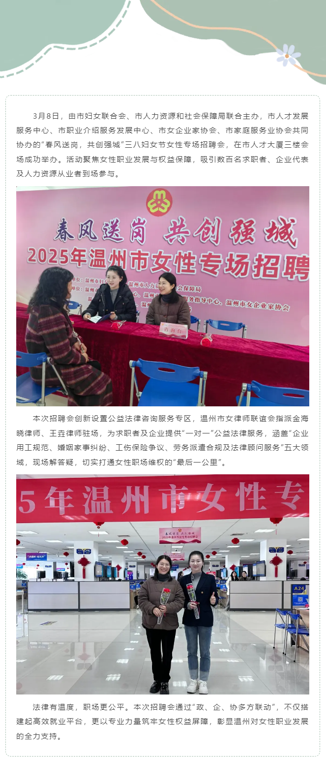 春风送岗,共创强城 | 我市女律师服务2025年温州市女性专场招聘会