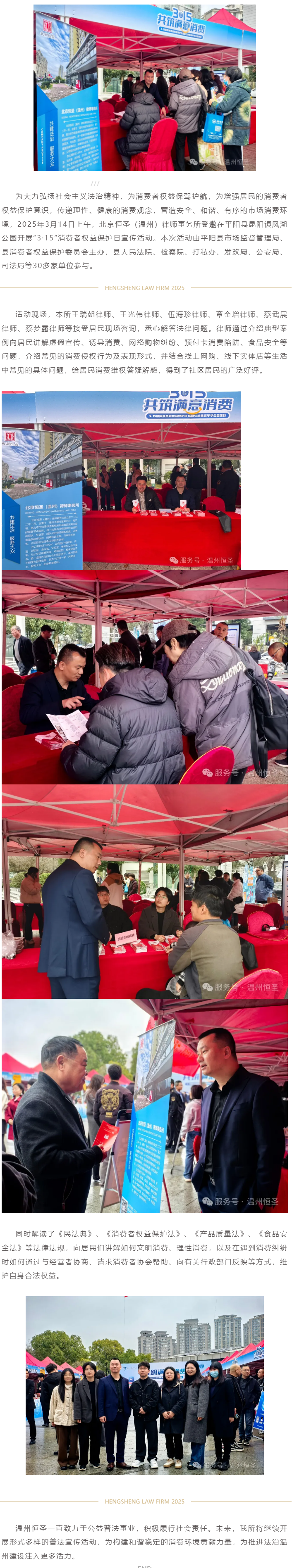温州恒圣律师积极开展3·15国际消费者权益日公益普法活动