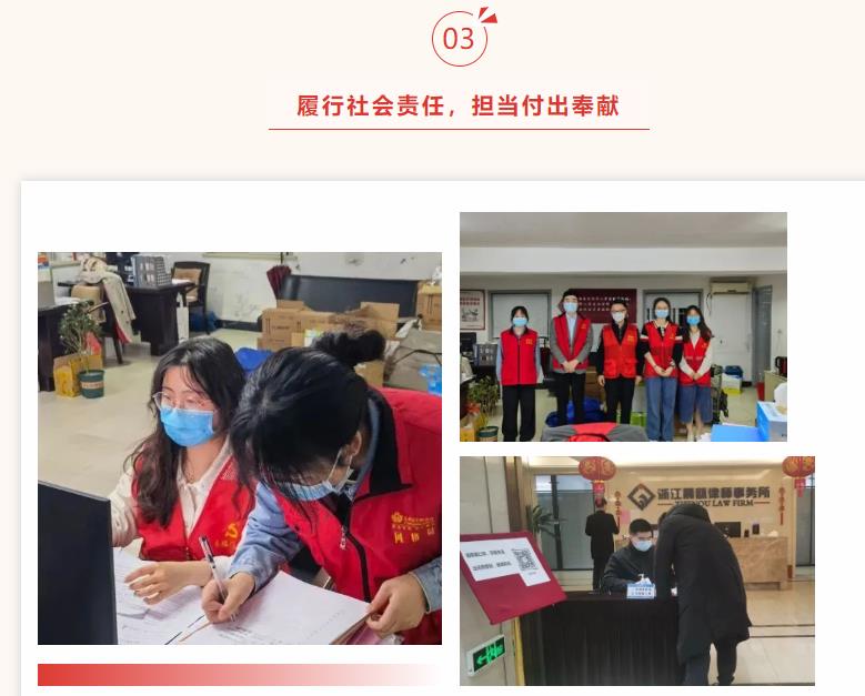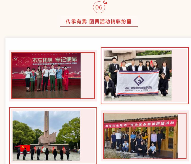 震瓯所注重加强青年律师的学习能力建设,坚持党建带动团建,充分发挥团组织的作用,调动青年律师的积极性、主动性和创造性。并把团建工作纳入党建工作的统一规划部署之中,发挥党建工作统领作用,统一思想、激发动力,让青年律师深入参与到律所中心工作之中,为青年律师创造更大平台,提供更多机遇。组建“红领团队”,在法律服务中全体成员以红色精神为傲,共同努力,奋力前行,积极参与法律援助、投身社会公益事业。