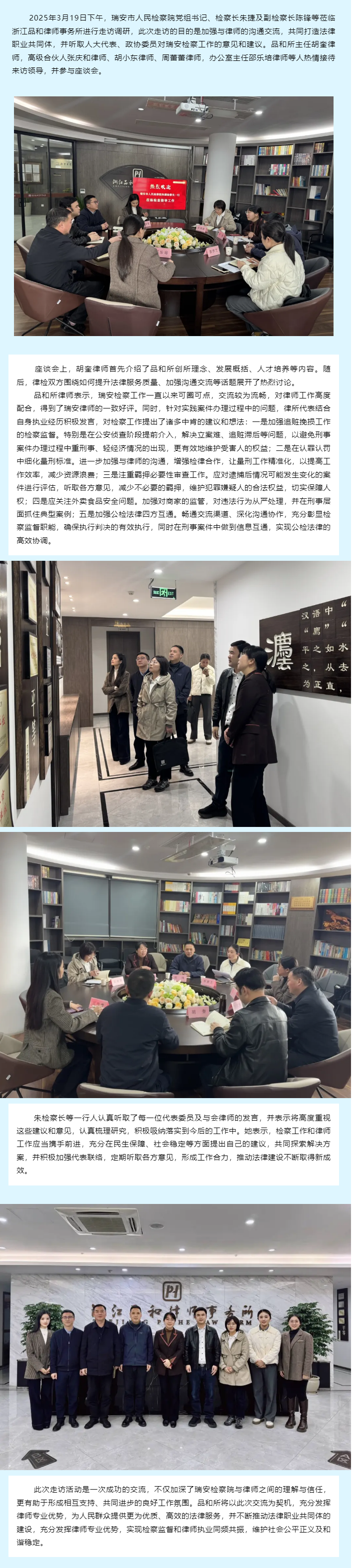 瑞安市人民检察院检察长朱捷一行莅临品和所调研指导