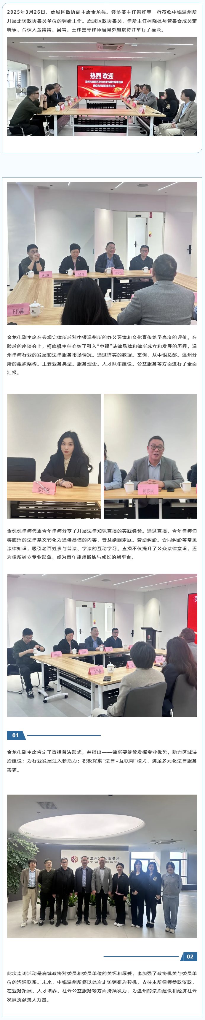 鹿城区政协副主席金龙伟一行走访中银温州所