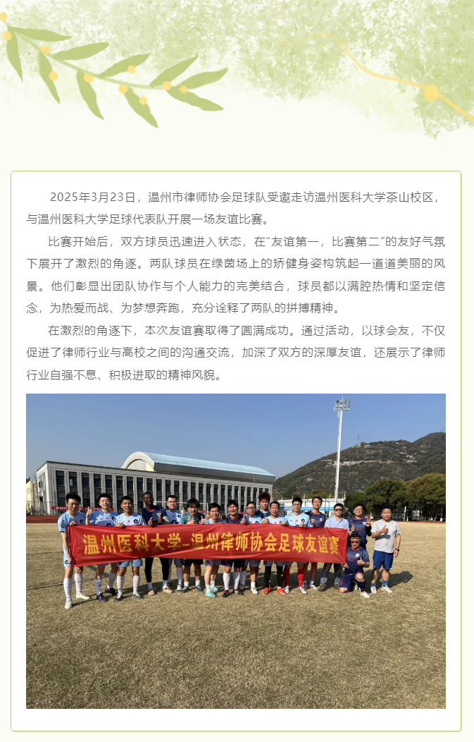 温州律协足球队与温州医科大学足球队友谊赛圆满举办