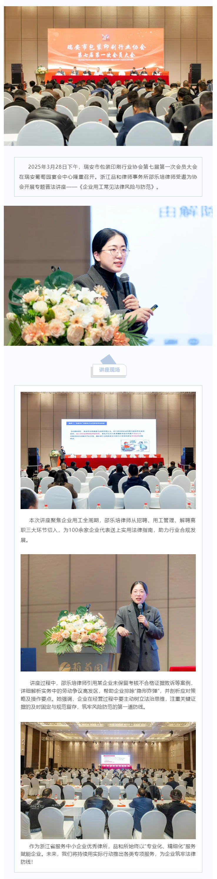 品和所邵乐培律师为瑞安市包装印刷行业协会送上“法律护甲”