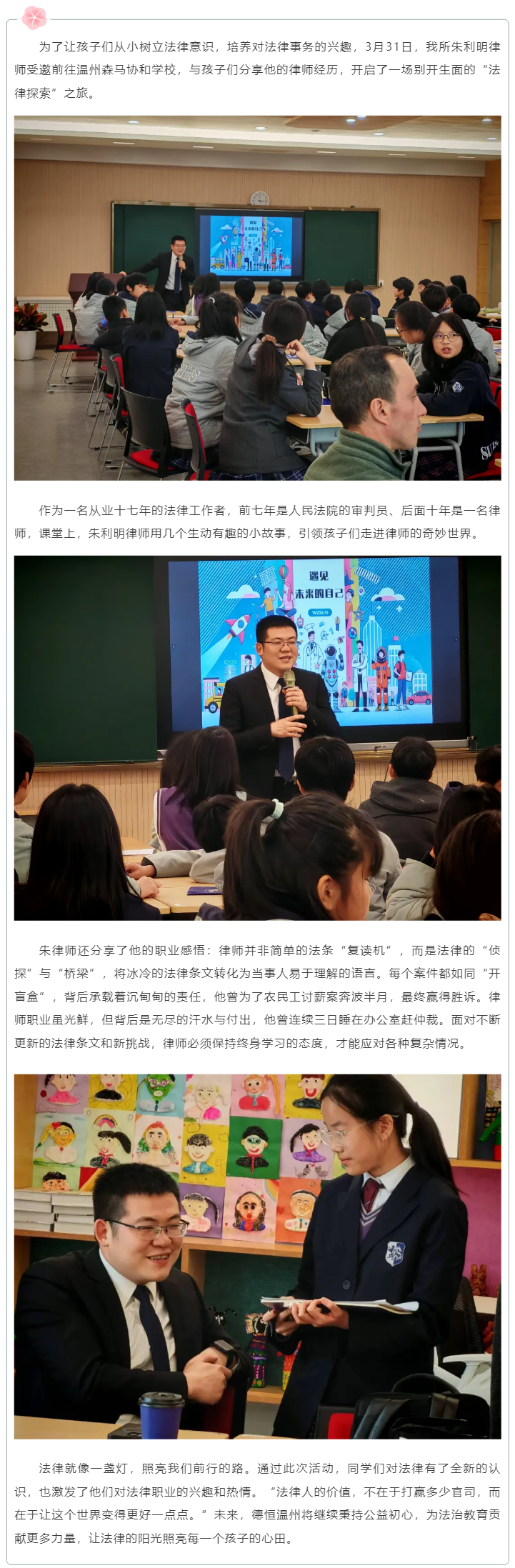 律师是做什么的?德恒温州所朱利明律师讲给温州森马协和学校的孩子听