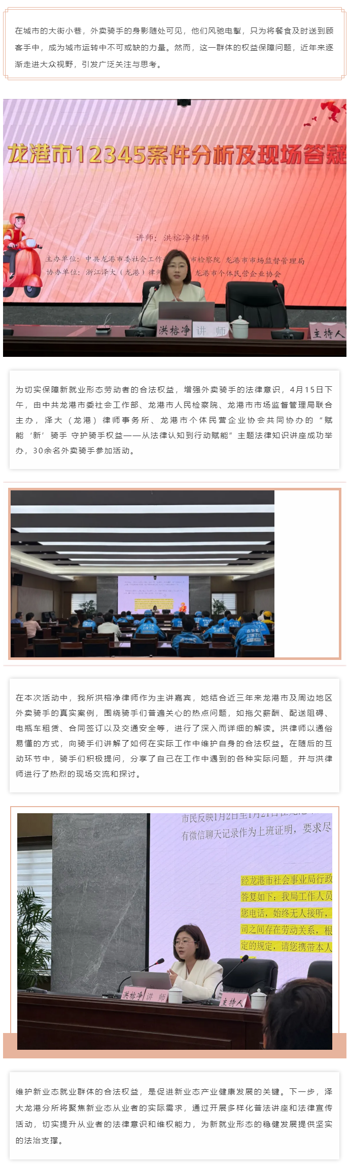 泽大龙港所洪榕净律师为外卖骑手开展普法讲座