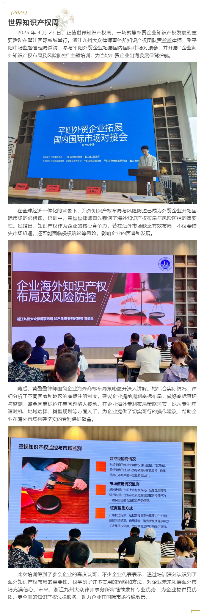 九州大众所黄盈盈律师助力平阳外贸企业筑牢海外知识产权防线