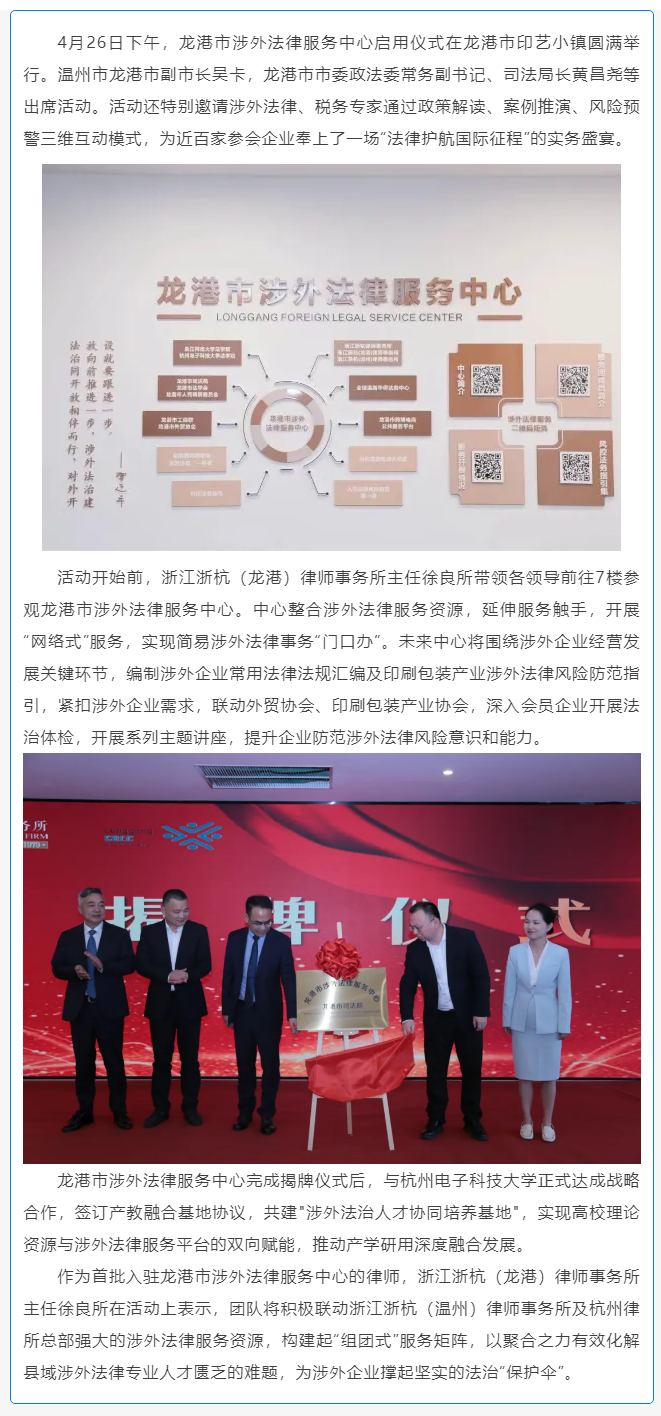 龙港市涉外法律服务中心正式揭牌启用