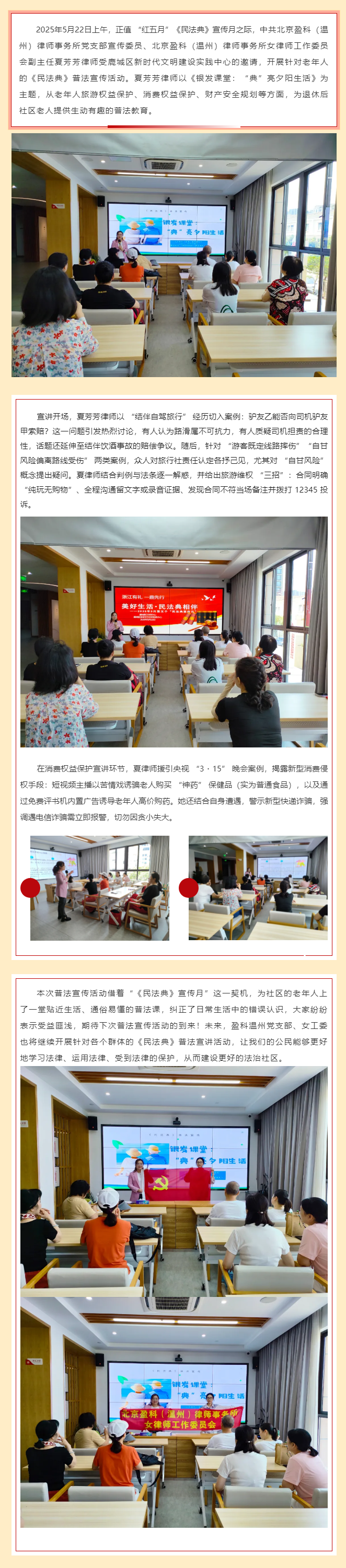 盈科温州所夏芳芳律师受邀在鹿城区新时代文明建设实践中心开展《民法典》普法宣传