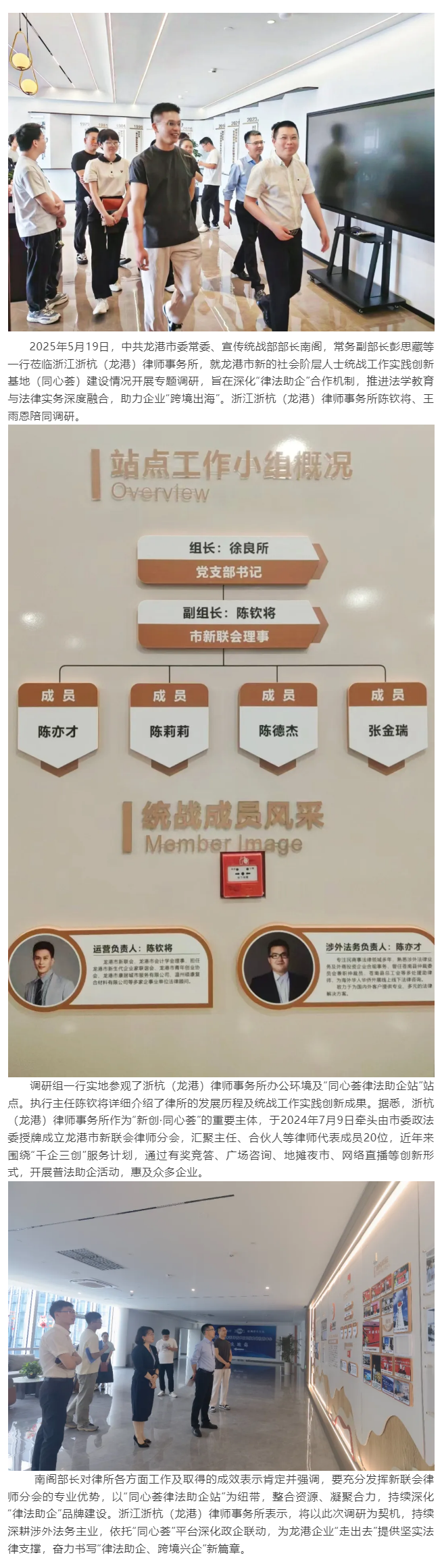 中共龙港市委常委、宣传统战部部长南阁一行调研浙杭(龙港)律师事务所——深化律法助企合作,助力跨境出海