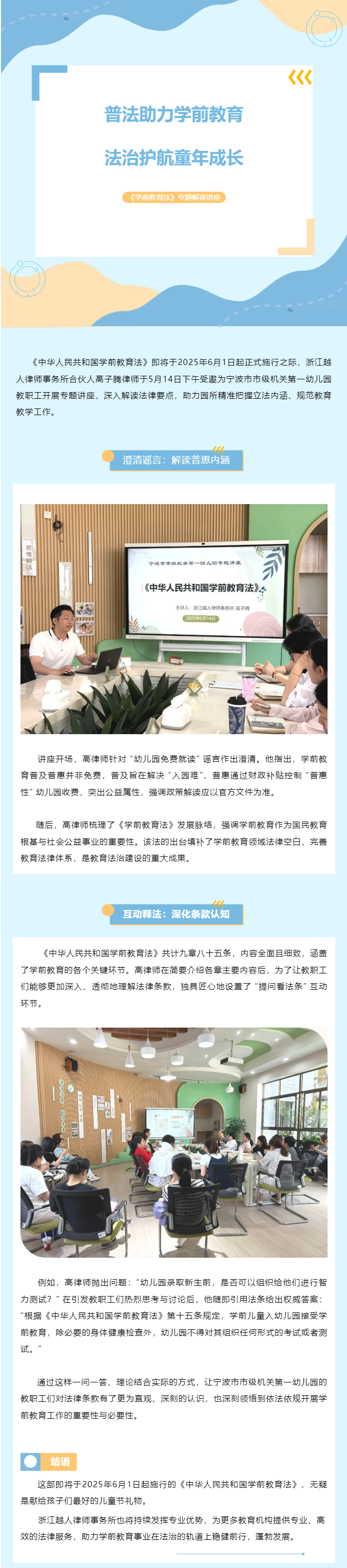 越人所高子腾律师为宁波市市级机关第一幼儿园开展专题讲座