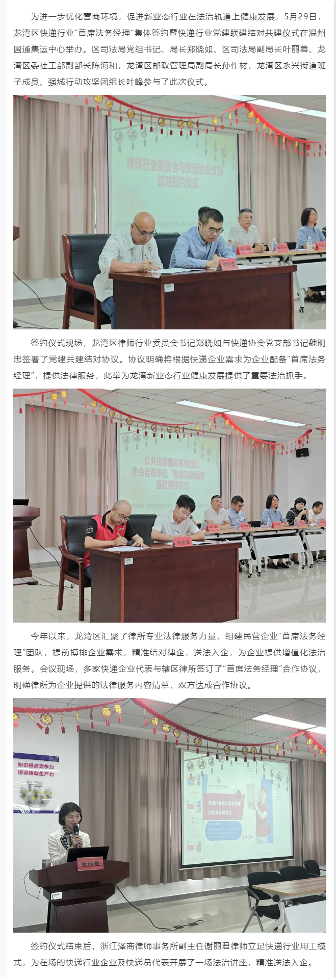龙湾区快递行业“首席法务经理”集中签约仪式顺利举办