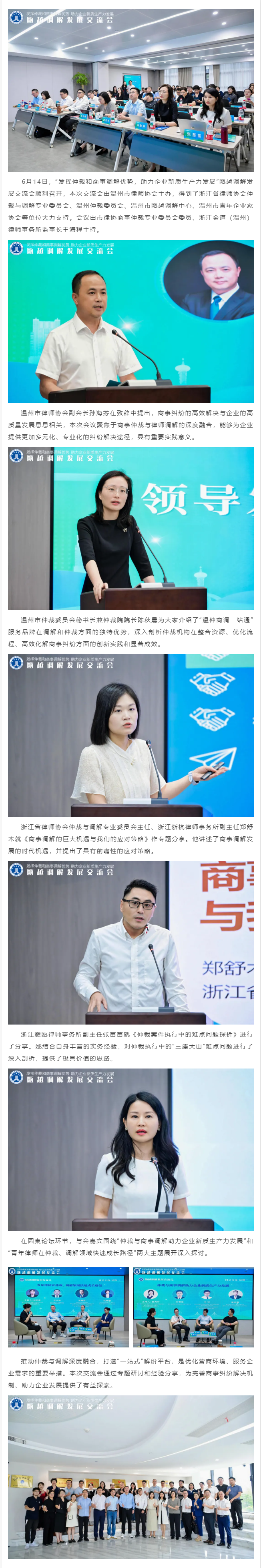“发挥仲裁和商事调解优势 助力企业新质生产力发展”瓯越调解发展交流会顺利召开