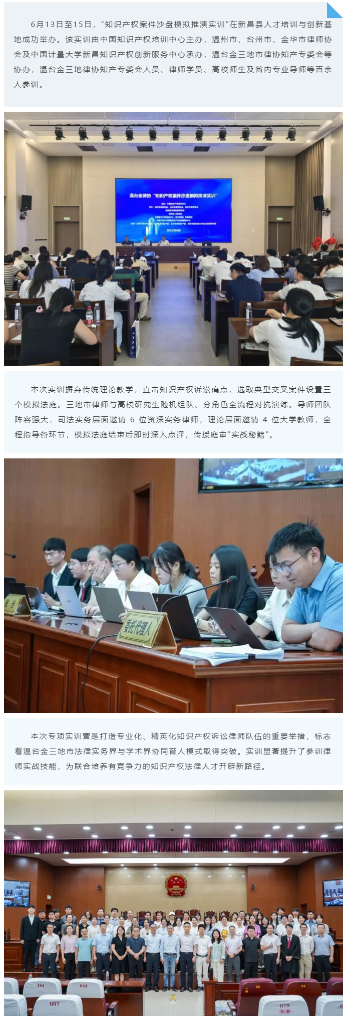 温台金三地律师协会联合中国计量大学成功举办“知识产权案件沙盘模拟推演实训”活动