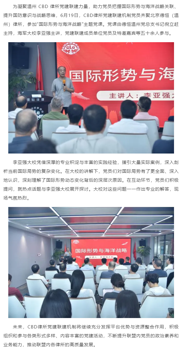 温州 CBD 律所党建联建机制开展“国际形势与海洋战略”党课