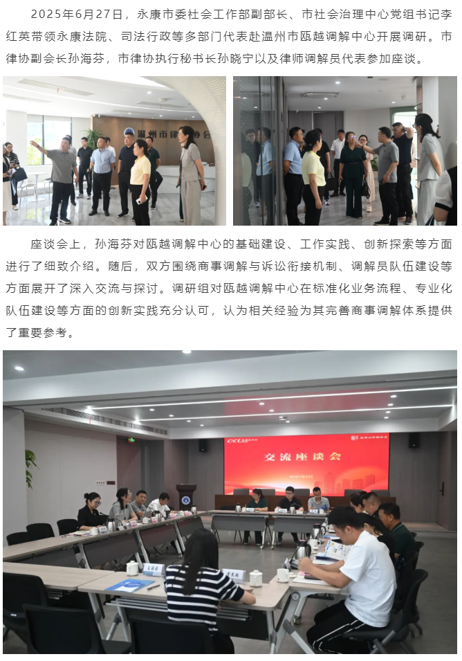 永康市社会治理中心一行走访瓯越调解中心调研